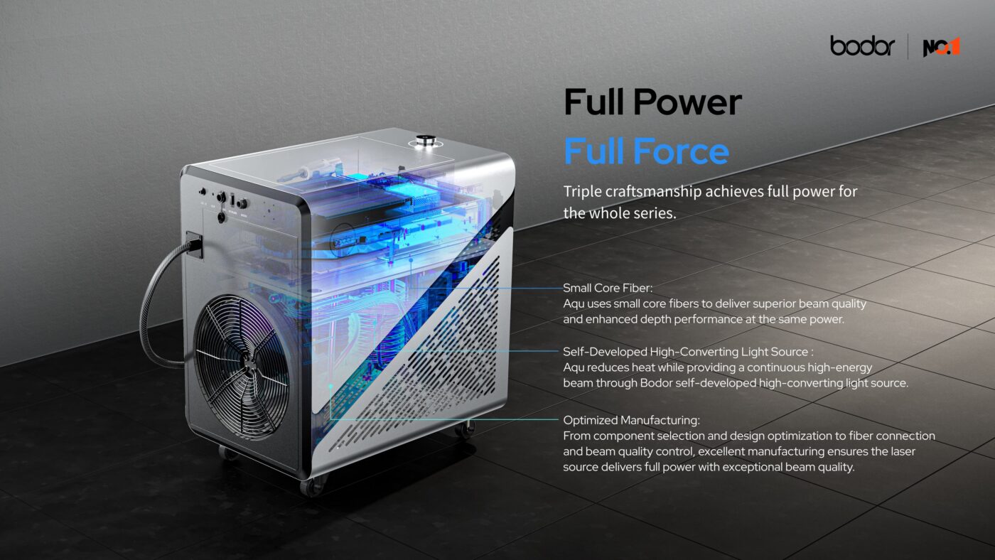 - Full Power, Full Force — Triple craftsmanship (small core fiber + self-developed high-converting light source + optimized manufacturing) delivers full 2000W power with superior beam quality and enhanced depth performance.